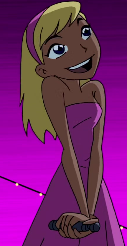 Kitten has fair skin, blue eyes, and blonde hair. In "Date With Destiny," she wears a floor-length, strapless pink dress, a pink headband, and a white corsage to her prom.