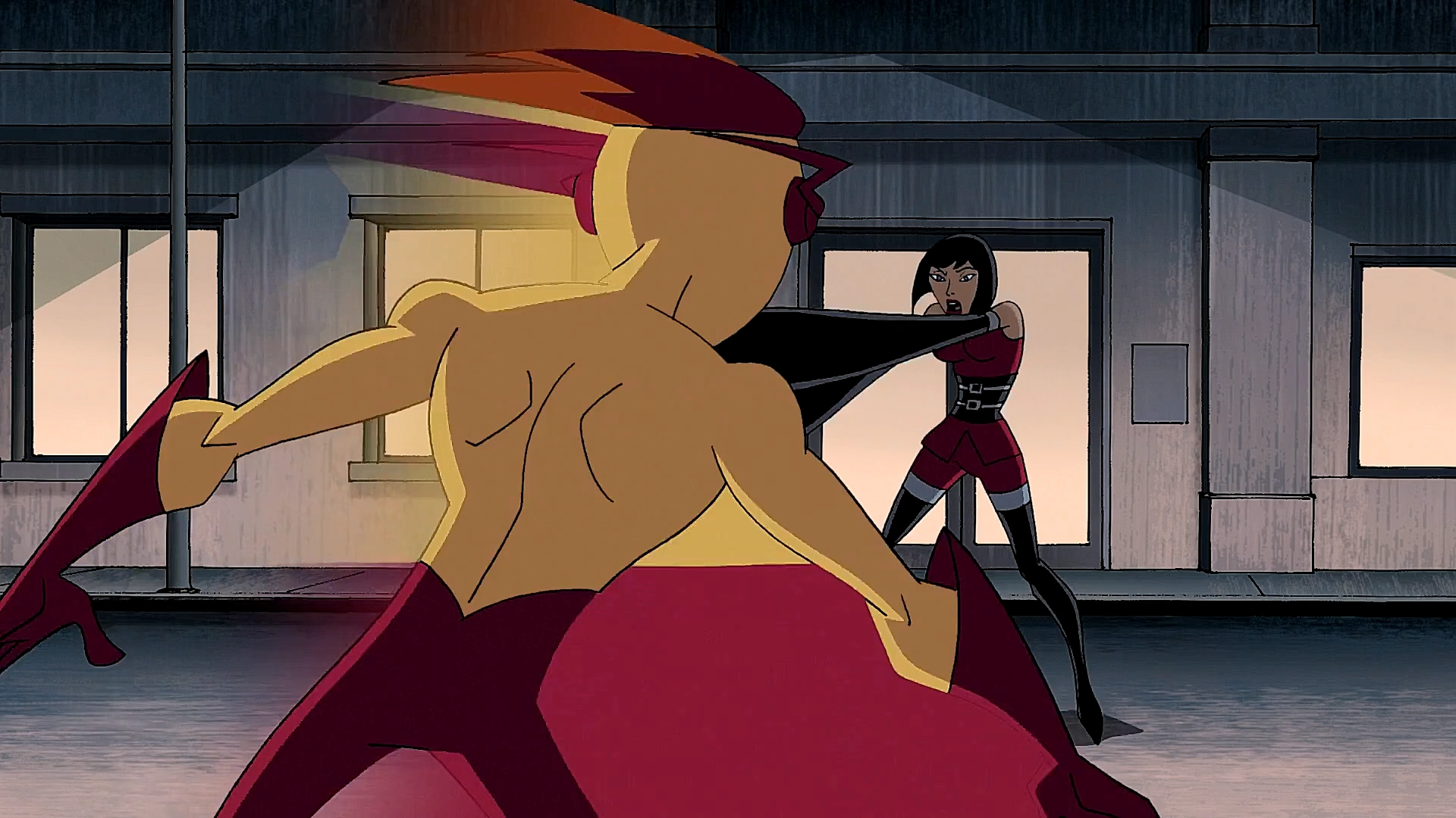 When Madame Rouge arrives, she expresses her disdain at the H.I.V.E.'s inability to keep Kid Flash imprisoned and their status as "children" in general, then Jinx surprises herself and smiles slightly as her heart is beating for Kid Flash. Madame Rouge laughs as she said most unlikely, she turns around and she goes after Kid Flash herself. Still determined to prove her worth to her, Jinx decides to hunt Kid Flash down as well and catch him before Madame Rouge gets to him first. But again, most of the HIVE with the exception of See-More refuse to tag along, this time in fear of vexing Rouge.