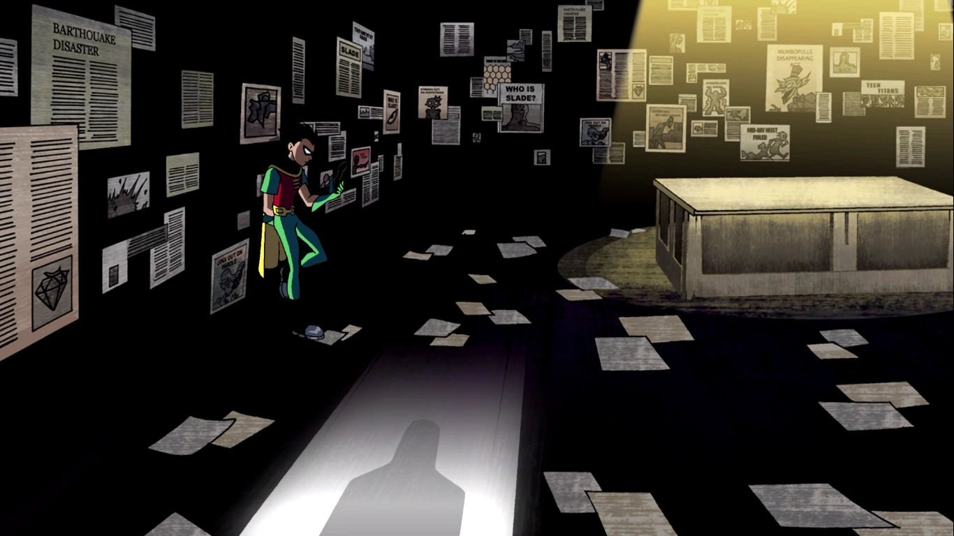 Red X once again sets out to steal the final chip, but after he nabs it, Slade appears and reveals that he had always known that Red X was really Robin. Right after this revelation, Slade grabs the chips and the other Titans crash in, going for Red X first. Robin unmasks himself, giving his teammates a major shock, and chases after Slade while a large platoon of robot commandos appears and surrounds the Titans. Robin chases Slade across the rooftops and engages him in combat, with Slade all the time taunting Robin about his obsessive drive to catch him and having now broken the trust of his friends. Robin finds himself outclassed, but Slade strangely seems reluctant to let Robin come to harm. Finally, Robin manages to overpower Slade - only to discover that this, too, is just a robot, leaving him back at square one and worse.