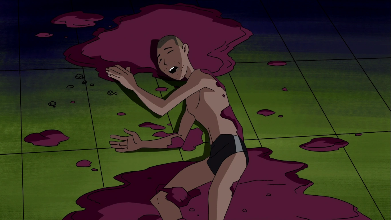 Plasmus reverts to human form, Otto, after rendered unconscious by Raven astral ability.