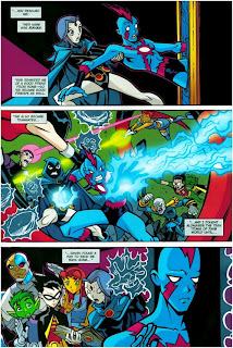 - In "Titans East - Part 2", Raven, along with the rest of the Teen Titans responded to Cyborg's call for help in the Titans East tower and fought Más y Menos with Beast Boy, and she fought Speedy.