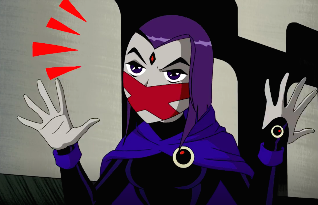 Raven fed up with Cyborg and Beast Boy’s arguing.