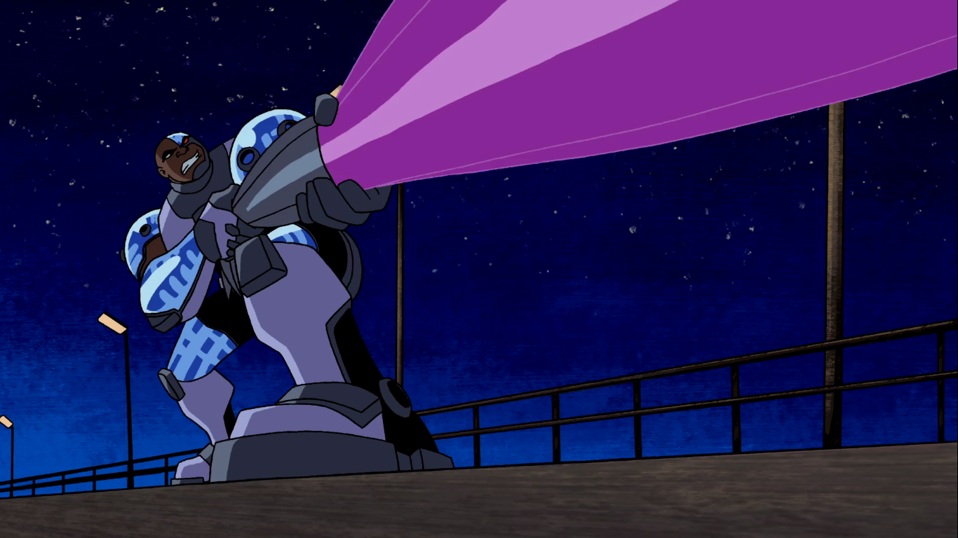 - When Starfire tries to recite her six thousand verses of Gratitude, Cyborg's eyes are both normal ones. This was more than likely done to promote comedy; his robotic eye's pupil was colored red, so this may have been intentional. However, this may just be an animation error.