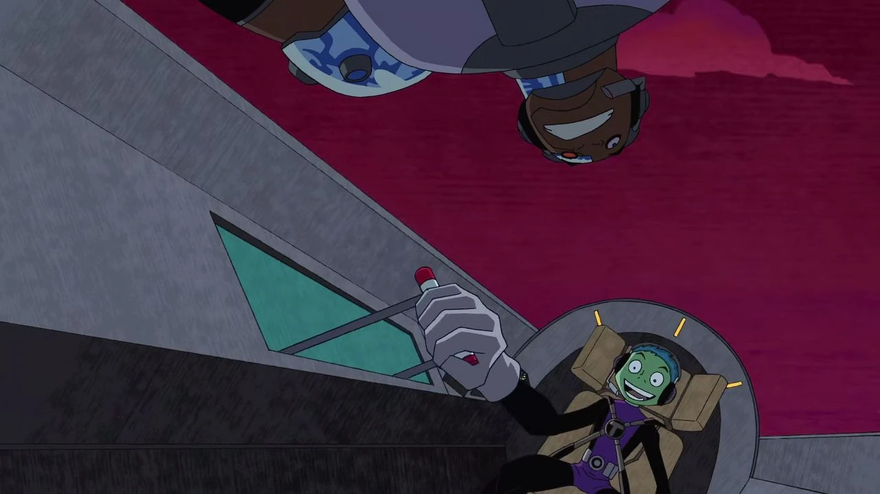 - In a scene where Beast Boy and Cyborg were screaming while the T-ship is rising, Cyborg's hands are seen holding onto the T-ship.