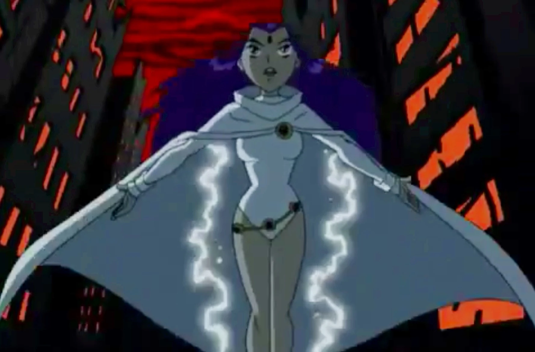 - When Beast Boy begins questioning if Raven is still herself, she was standing right next to Robin. Though, in the following wide-shot, Raven is suddenly further away.