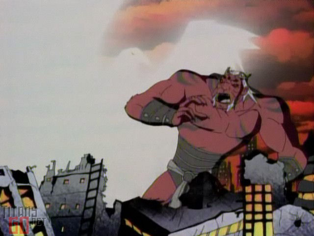 Slade continues fighting the guard but is at a significant disadvantage, as he is impervious to most everything, including lava. The guard says that pure evil cannot be dominated, but Slade replies with, "Actually, I'm not such a nice guy myself." He pushes a detonator and a bomb he secretly planted on the door explodes, engulfing the guard and breaking open the door. Arrows of white light shoot out of the opening, one of them hitting Slade and restoring his human body. He welcomes the return of his flesh and blood, picks up the fallen guard's axe and heads for the exit.