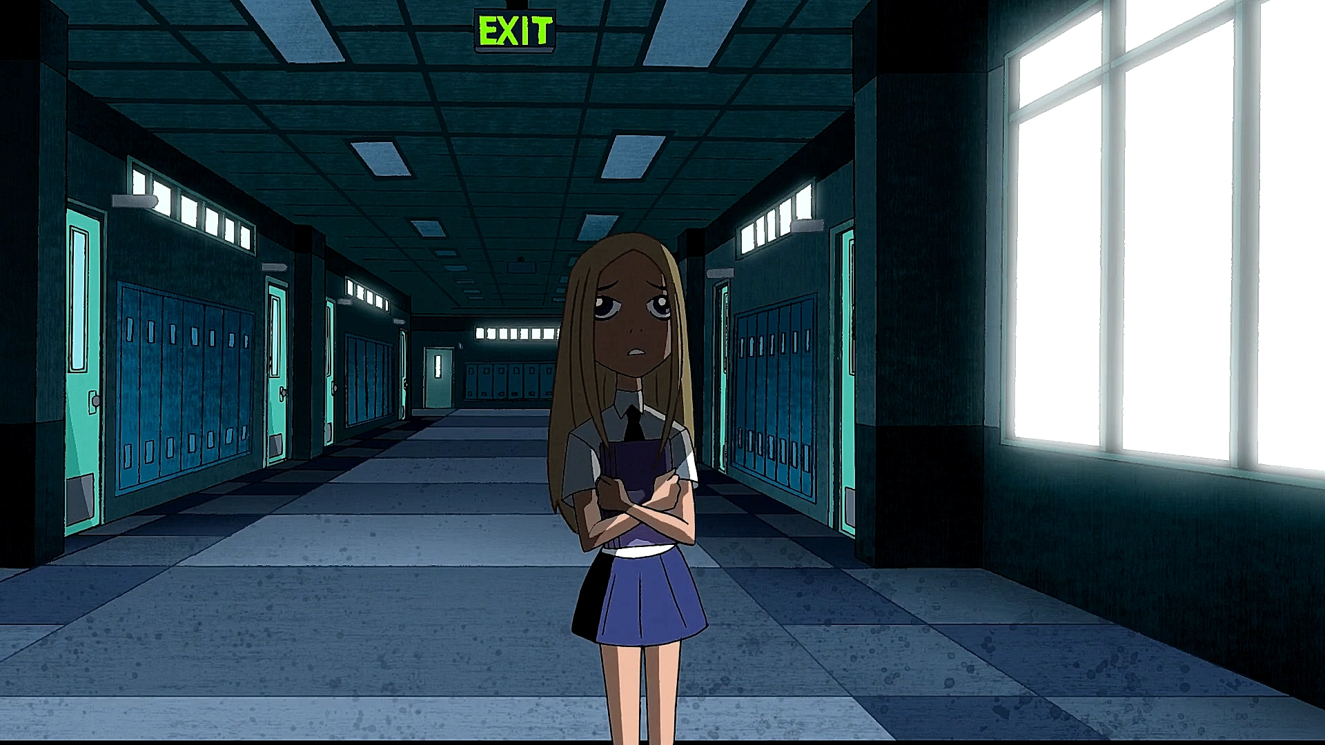 Just then, Robin sends an SOS to Beast Boy to aid in their battle with the creature. He softly begs her to come with him, but she refuses, telling him that he is the Teen Titan and that she is not up to fight crime and save the world, only to study for a geometry test she has next period. Eventually the bell rings, and the girl disappears into the crowd of students. Beast Boy stands in the hallway forlorn, but eventually decides to respect the girl's wishes, whoever she may be, and charges out of the school to help his fellow Titans.