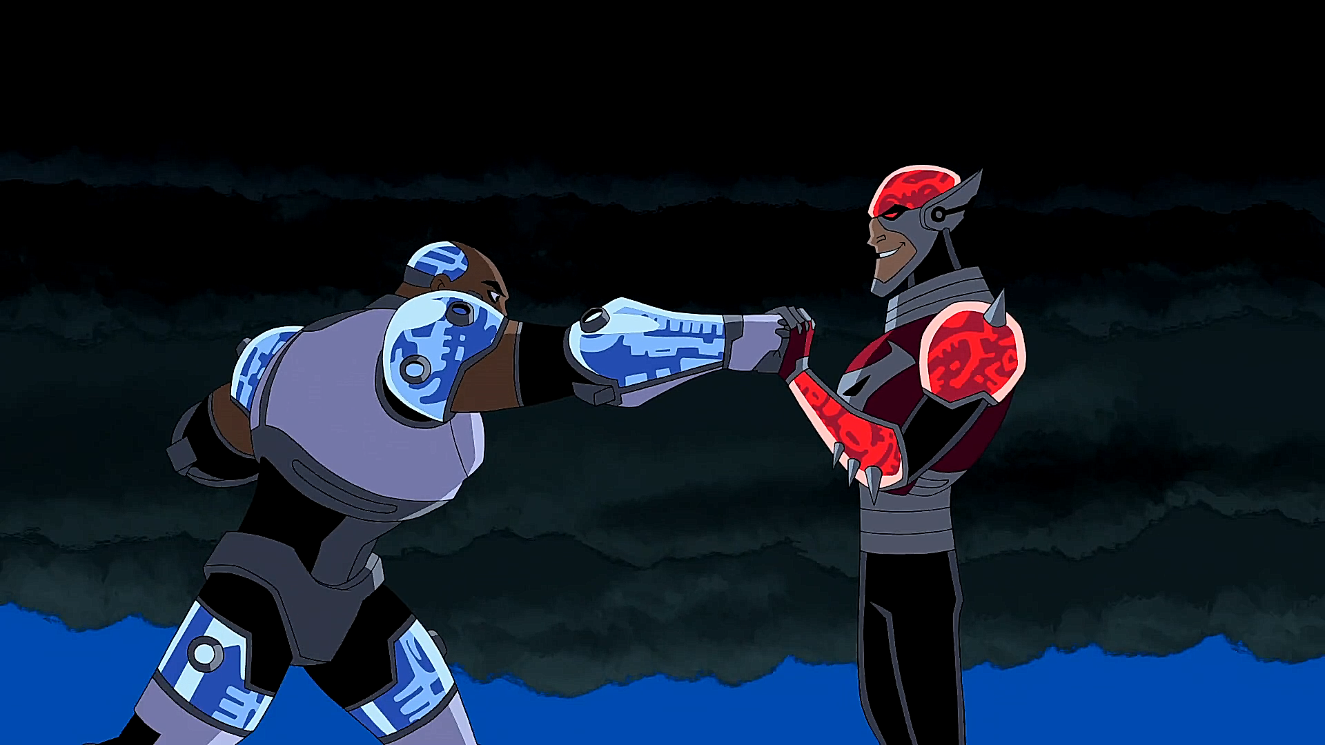 Cyborg struggles in his fight against the newly enhanced Brother Blood